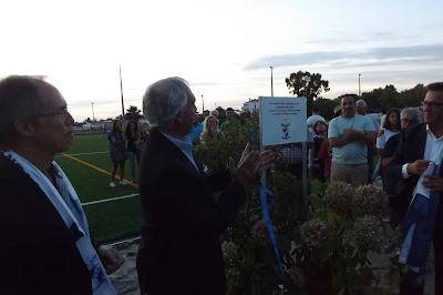 Depois foi cortada a fita pa prache, destapada a inscrição no Campo Sintético e abertas as garrafas de champanhe. Pelo meio o pontapé de saída oficial dado por dois jovens atletas do Clube.